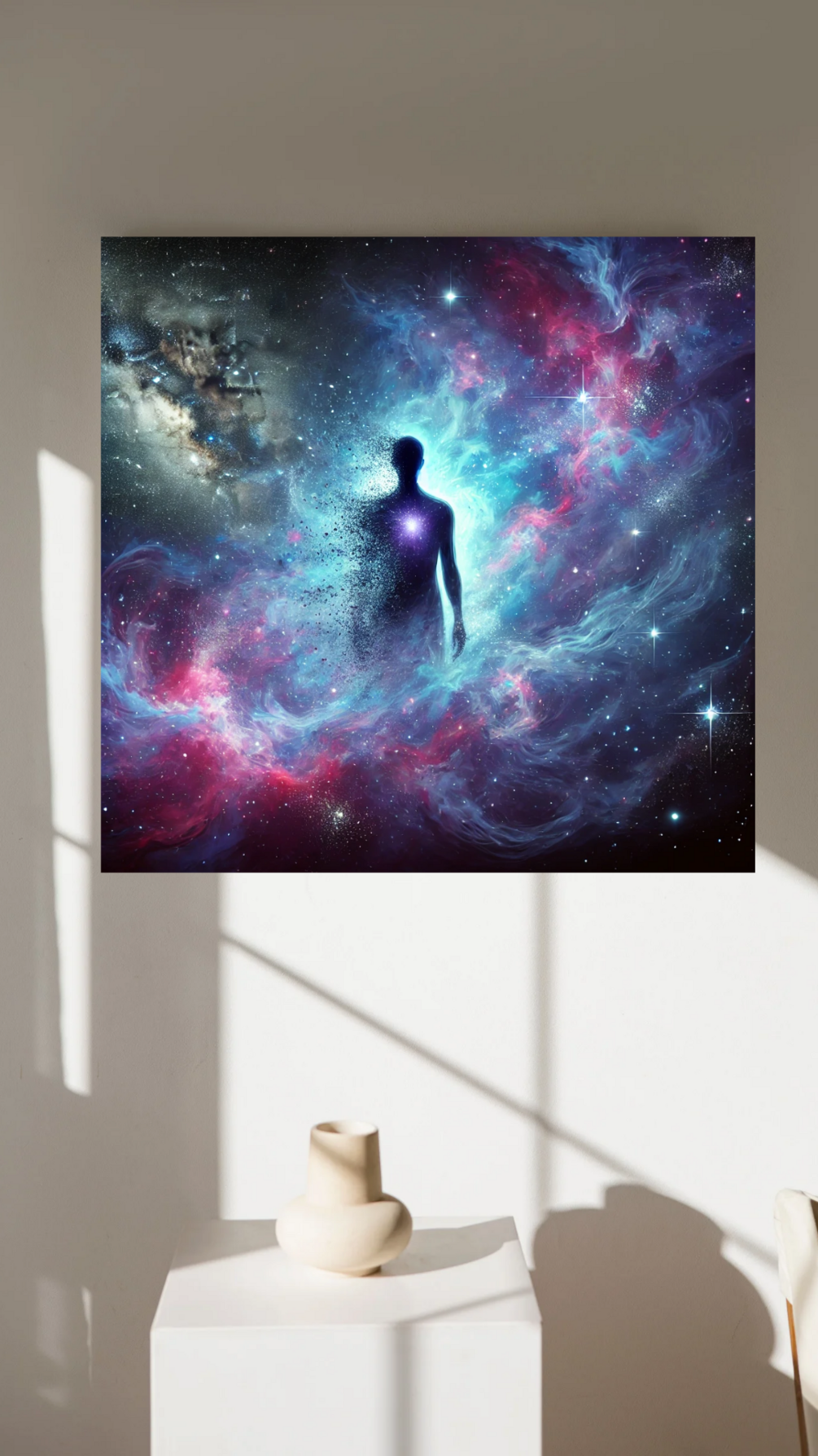 This artwork symbolizes the deep connection between humans and the cosmos, making it a perfect representation of themes such as self-discovery, existentialism, and spirituality. It can be used in meditation spaces, book covers, album art, or even in scientific discussions on the universe’s mysteries. The image serves as a metaphor for personal growth, the impermanence of life, and the idea that we are all made of stardust—reinforcing our intrinsic link to the universe.